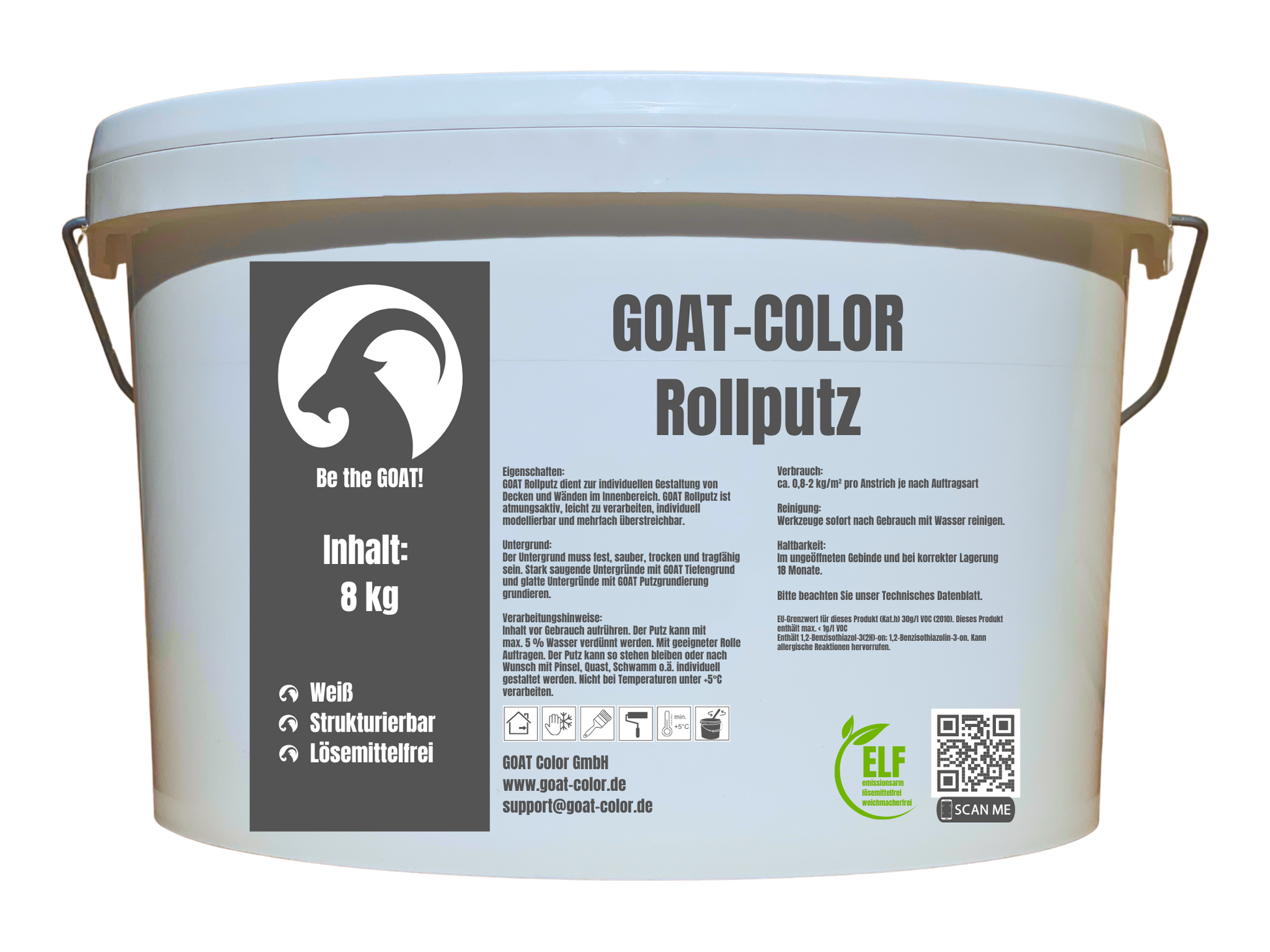Ob Sie eine dezente Struktur oder einen markanten Look bevorzugen, GOAT Rollputz ermöglicht eine einfache Anwendung und ansprechende Ergebnisse. Entscheiden Sie sich für GOAT Rollputz und erleben Sie die ideale Kombination aus Funktionalität, Ästhetik und Qualität!